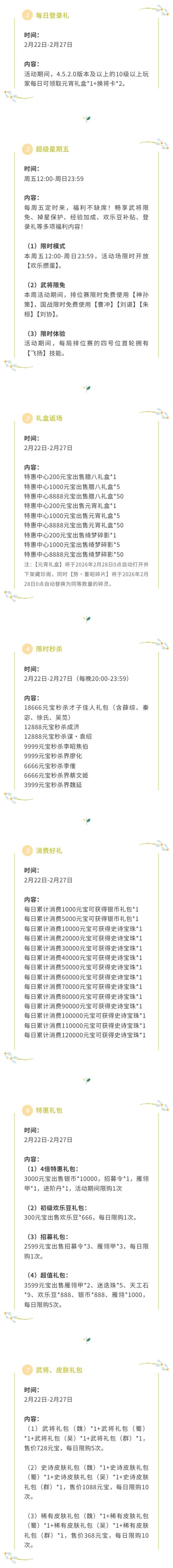 (1)武将礼包(魏)*1+武将礼包(蜀)*1+武将礼包(吴)*1+武将礼包(群)*1,售价728元宝,每日限购5次