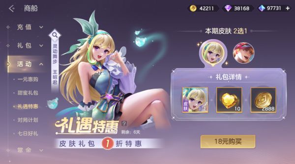 礼遇皮肤礼包限时1折,王昭君·灵动舞步、残影·高能乒乓超值2选1获得!