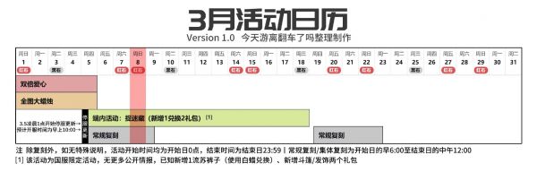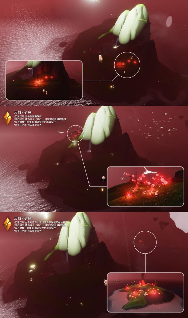 落石点 位置:云野圣岛 性质:红石 时间:7:08-8:00、13:08-14:00、19:08-20:00 可能的落石位置(图示位置随机出一处)   先祖复刻 时间:3.05更新结束后 - 3.09中午12:00 复刻先祖:魔法季丨赞许壁画家 复刻物品:蓬松卷发、紫色面纱面具(面具可染色)   捉迷藏 捉迷藏相关活动进行中,有1兑换物2礼包,别忘啦! (兑换物传送至活动场地,水晶球那里点开,还能顺手拿礼包魔法)   活动日历