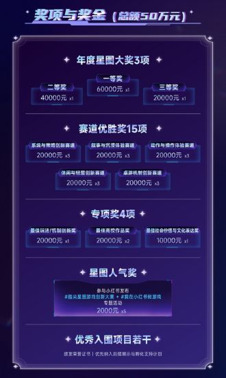 本届大赛与小红书游戏平台开展内容合作,开设参赛作品站内专属流量曝光扶持通道。参赛团队在提交作品的同时,需同步在小红书发布参赛作品宣传内容,并带话题#指尖星图游戏创新大赛+#我在小红书做游戏。