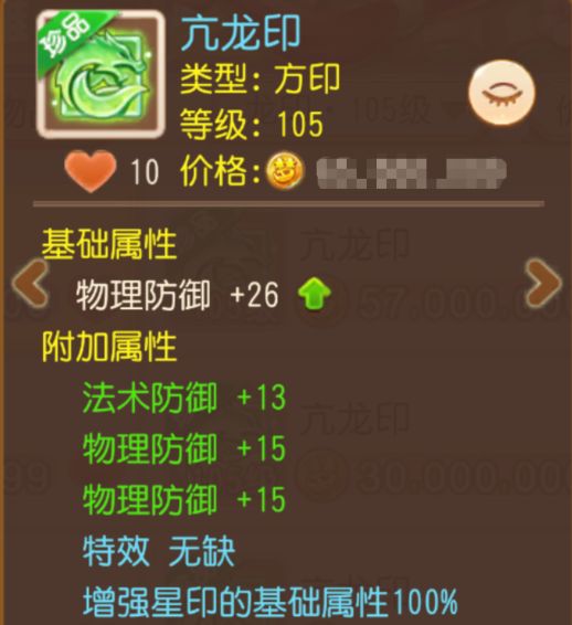追求极限速度的少侠们,准备好尖叫了吗?这枚兔印基础属性及3条附加属性满强化后加了57点速度!