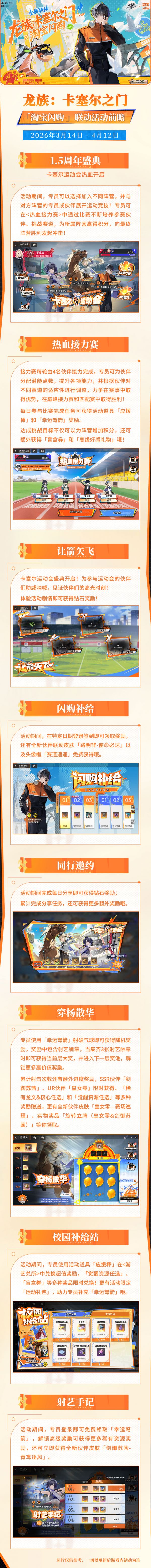 亲爱的专员,《龙族卡塞尔之门》1.5周年庆典版本「卡塞尔运动会」已于3月14日热血开启!