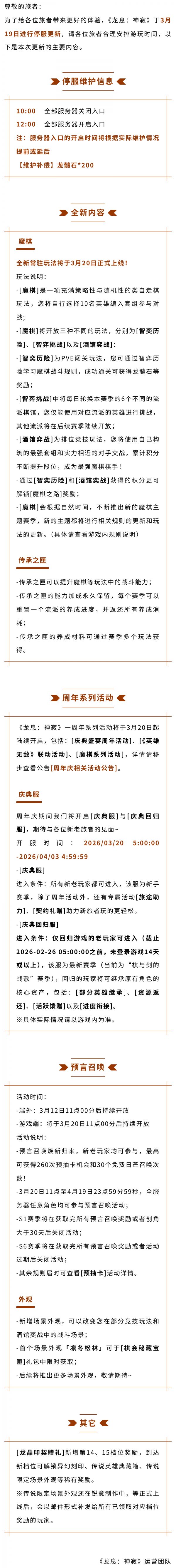 《龙息:神寂》3月19日更新公告