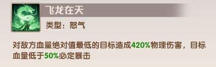 对敌方血量绝对值最低的目标造成420%物理伤害,目标血量低于50%必定暴击。