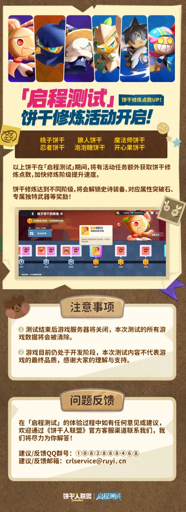 「启程测试」期间,以下6位饼干将获得修炼加速,通过活动任务额外获取修炼点数,阶级提升更快!