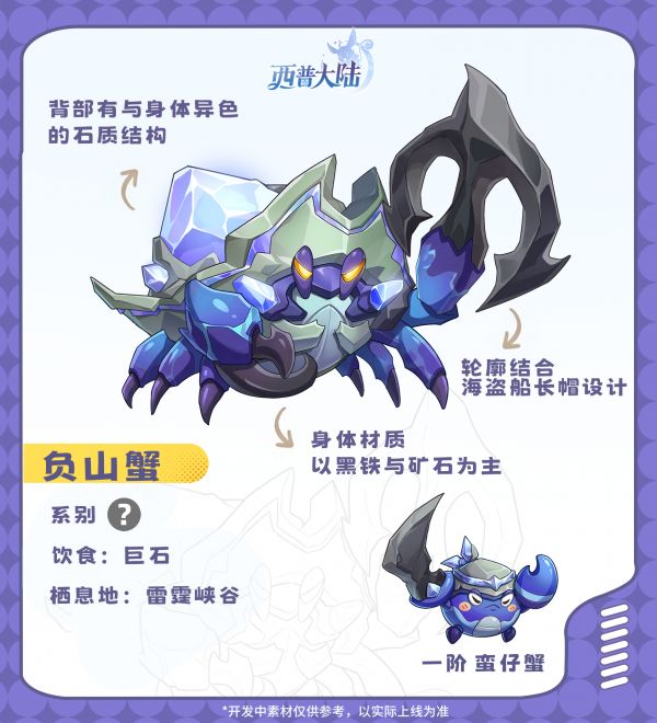 外表似乎只是它的伪装,看似凶恶的负山蟹,其实天性谨慎,擅长欺软怕硬。当遇到真正的强敌时,它会立刻收起张牙舞爪的架势,但遇到弱小的精灵时,又开始摆出横行霸道的姿态。