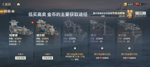 参与远洋贸易玩法,累计贸易时长,即可轻松获得传奇战舰碎片!
