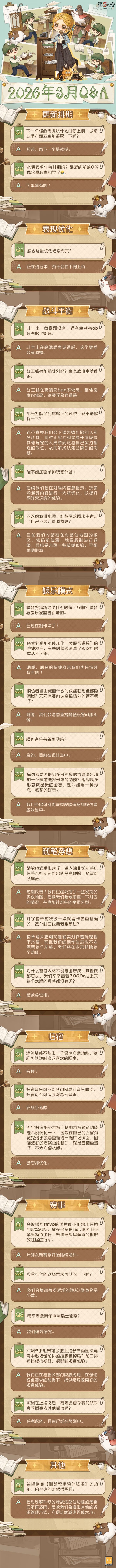 第五人格卧谈会2026年3月Q&A汇总送达!