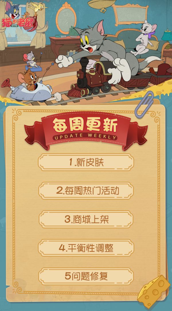 以上就是本周(4月9日)更新维护的全部内容啦!感谢小伙伴们对于《猫和老鼠》手游的支持和喜爱,愿欢乐永远陪伴大家左右!