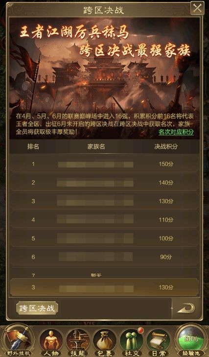 每一战都重要:哪怕只是一场海选胜利,都能为你的家族增加积分,所以请每个家族都不要放过任何一场胜利,踊跃参与每一次对战
