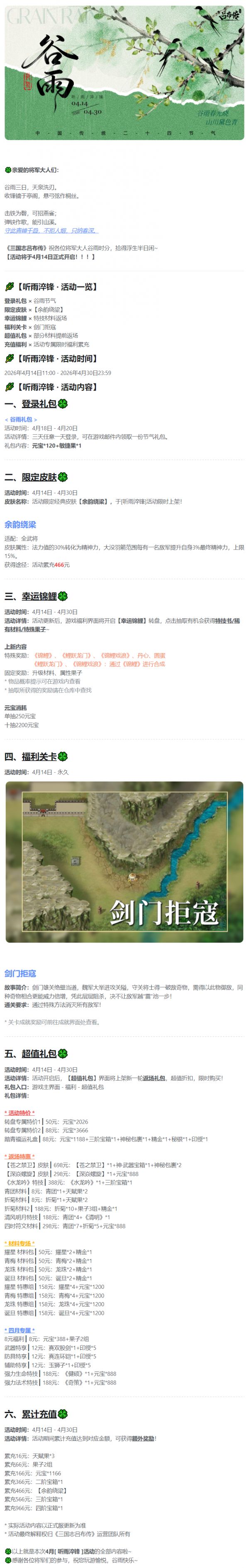《三国志吕布传》4月活动丨万物生辉
