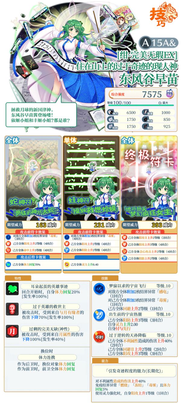 ※「[绀-完美无瑕EX]住在山上的过于奇迹的现人神 东风谷早苗」是仅在EXFES限定祈愿中登场的角色。