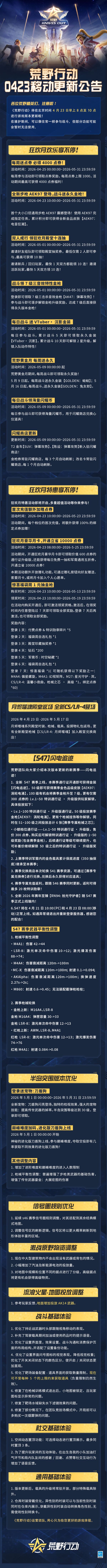 荒野行动0423移动更新公告