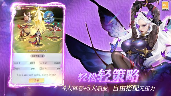 游戏摒弃传统卡牌复杂烧脑玩法,采用四大阵营 + 五大职业轻策略体系,圣盾、战士、奥术、辅助、迅捷职业克制清晰易懂,无需深度思考即可搭配强势阵容。游戏支持90% 智能离线挂机,离线持续产出养成资源,碎片时间也能轻松成长,真正解放双手、解压躺赢。同时上线推关即送1000 抽福利,稀有女神零门槛获取,快速组建心仪女神战队。