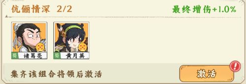 【伉俪情深】诸葛亮+黄月英,激活后最终增伤+1.0%;