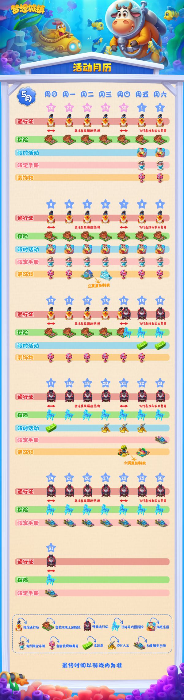 【梦想城镇】已为大家标注了游戏内5月活动时间,具体请以游戏内实际活动时间为准喔!