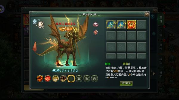 玩家可以通过使用灵兽技能书,为灵兽学习后天技能。后天技能可以自由搭配,也可以遗忘后重新学习,为培养提供了极高的灵活度。
