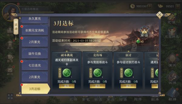 在活动开启期间,参加活动规定的副本挑战、竞技场、征讨讨伐等玩法可获得活跃代币;