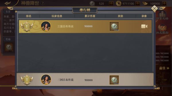 此外每期神兽还有伤害排行榜,根据不同的排名会获得不同数量的神兽积分奖励。也可以在这里查看大佬们的通关阵容和操作手法。