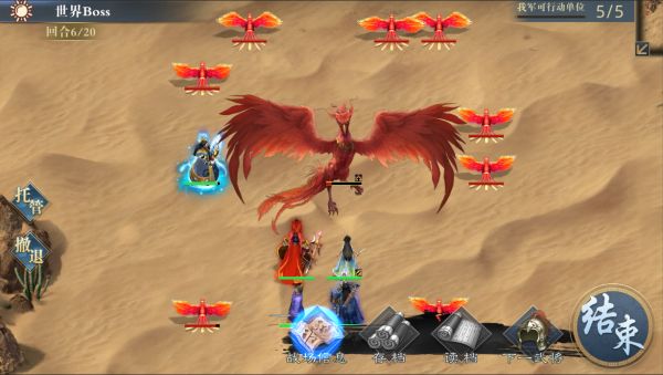 每次战斗可以上阵1-5名武将。整场战斗有20个回合,但神兽的能力会逐渐变强,所以要尽快打出高的伤害。