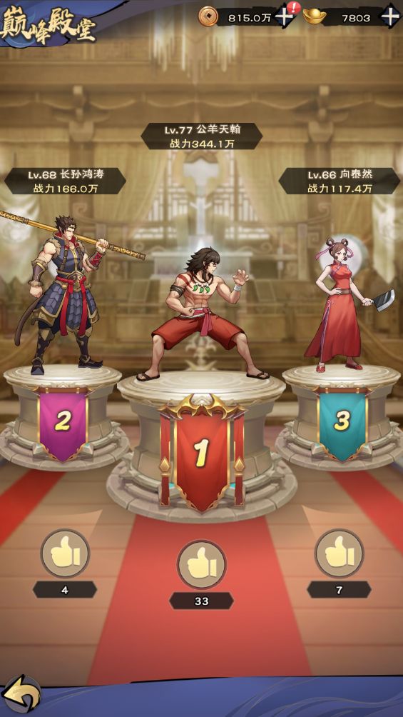 在学院试炼中,排名最高的三人会进入巅峰殿堂,享受众人的瞻仰和簇拥。巅峰殿堂会在每日24点根据排名进行刷新。